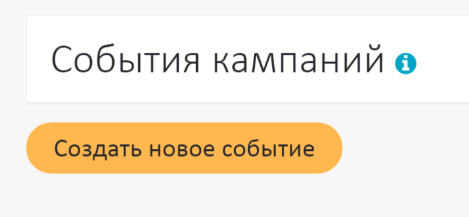 Для того чтобы использовать пользовательские события в кампаниях, необходимо предварительно задать их на вкладке Кампании - пользовательские события. На этой вкладке вы можете как просмотреть все существующие пользовательские события, так и создать новые, используя для этого кнопку “Создать новое событие”.