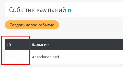Для начала работы с API пользовательских событий вам понадобится уникальный идентификатор нужного вам события, который можно найти слева от названия события в списке.