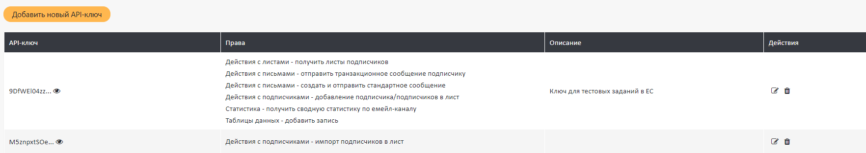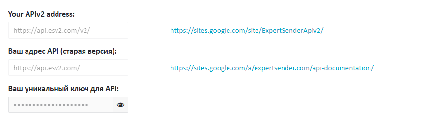 На этой вкладке можно найти актуальный адрес API, и свой уникальный ключ API.