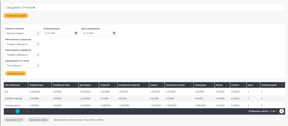 Также учитывайте, что все стандартные Сводные отчеты и Отчеты по сообщениям также применимы к сообщениям, участвующим в кампаниях.